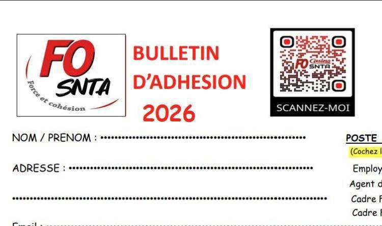 🎉 Adhérez au FO SNTA en 2026! 🎉