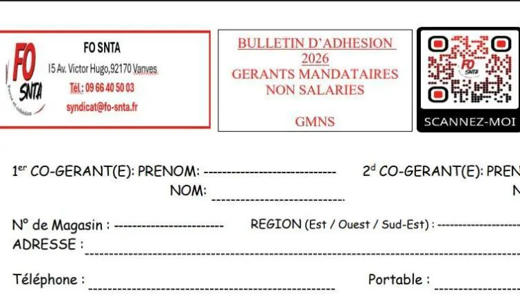 Bulletin d'adhésion FO SNTA 2026